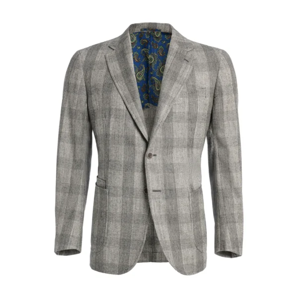 Kézi kidolgozás és időtlen elegancia jellemzi ezt az egysoros gombolású, kétgombos zakót, klasszikus kockás mintával. Alapanyaga a legmagasabb minőségű gyapjú. Modern és elegáns darab azok számára, akik a stílus mellett a praktikumot is értékelik, köszönhetően a letisztult szabásnak és a félbélelt kialakításnak. A zakón két foltzseb – melyek közül az egyik dupla – és egy „taschino a barchetta” (hagyományos nápolyi mellzseb) található. A jellegzetes nápolyi vállkialakítás és az aprólékos öltések a legmagasabb szintű kényelmet és kifogástalan megjelenést biztosítanak.